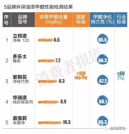 2014年11月,消道长向第三方权威检测机构送检了多乐士、立邦、华润、嘉宝莉、紫荆花等5款标有“净化甲醛功能”的环保油漆。